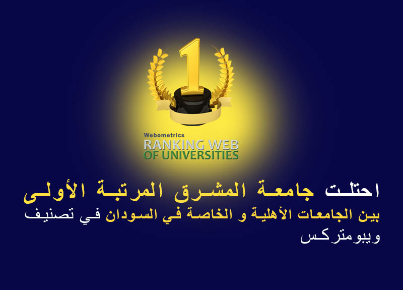 احتلت جامعة المشرق المرتبة الأولى بين الجامعات الأهلية و الخاصة في السودان في تصنيف ويبومتركس( يناير 2022م) العالمي لتصنيف الجامعات ، حيث يعتبر تصنيف (ويبومتركس)، أحد أكبر الأنظمة لتقييم الجامعات العالمية، ويُغطي قرابة 11998 مؤسسة تعليمية وبحثية عليا على مستوى العالم، ويصدر في إسبانيا عن المجلس العالي للبحث العلمي، ويستند إلى ثلاثة معايير رئيسية. معيار الأبحاث (Excellence) الذي يشمل عدد الأبحاث والتقارير المنشورة إلكترونياً، معيار (Openness) المتعلق بعدد الاقتباسات، معيار (impact) الذي يعتمد على درجة التأثير والانتشار على الإنترنت